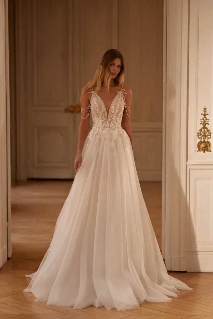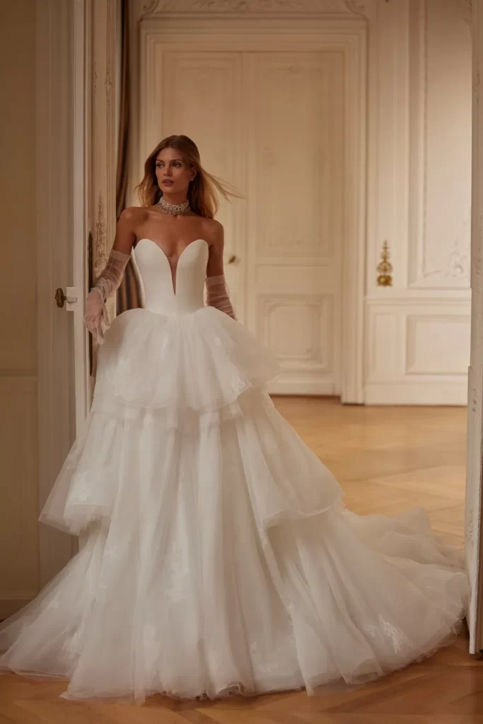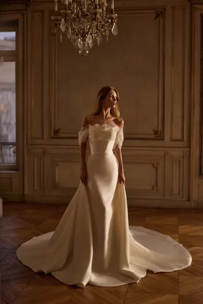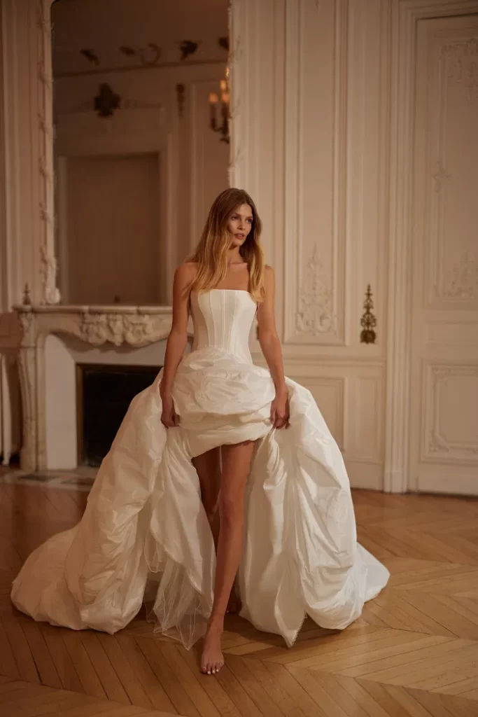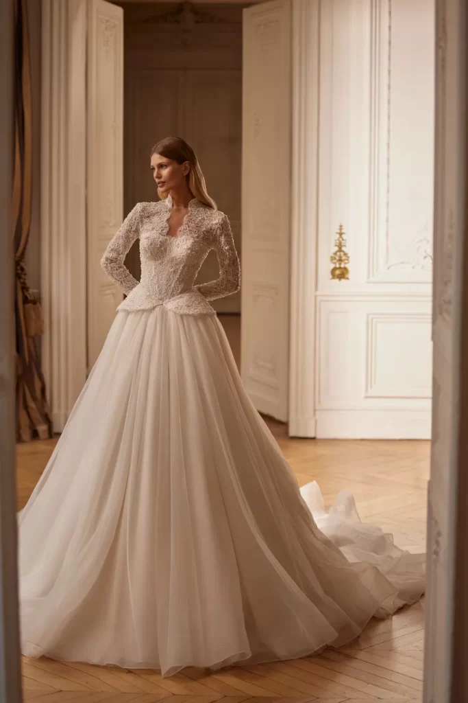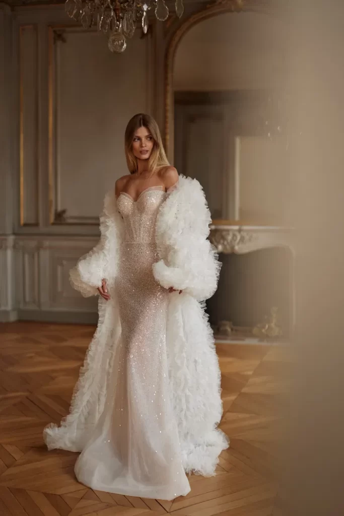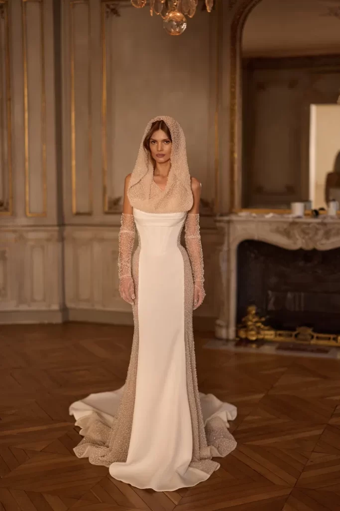 Her elbisenin dikilmesinden sorumluyuz; önlükler, yüksek kaliteli Avrupa tekstilleri, Fransız dantelleri, İtalyan nakışları ve uygulamaları kullanılarak elle yapılır. Minimalist tasarıma sahip klasik elbiselerden cüretkar kumaş, kesim ve dekor kombinasyonlarına kadar her gelin, düğün için kendi elbise tarzını bulacaktır.