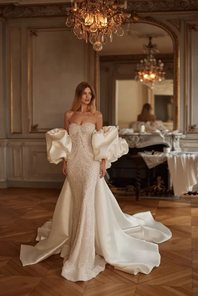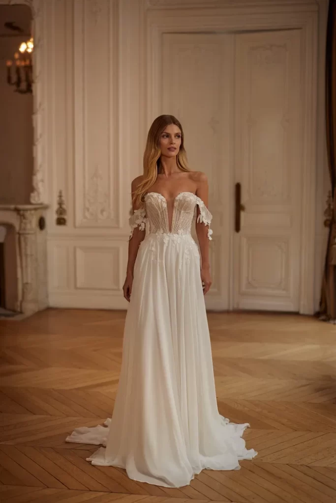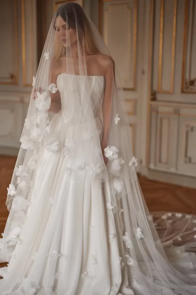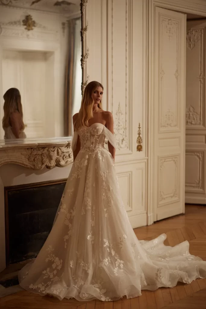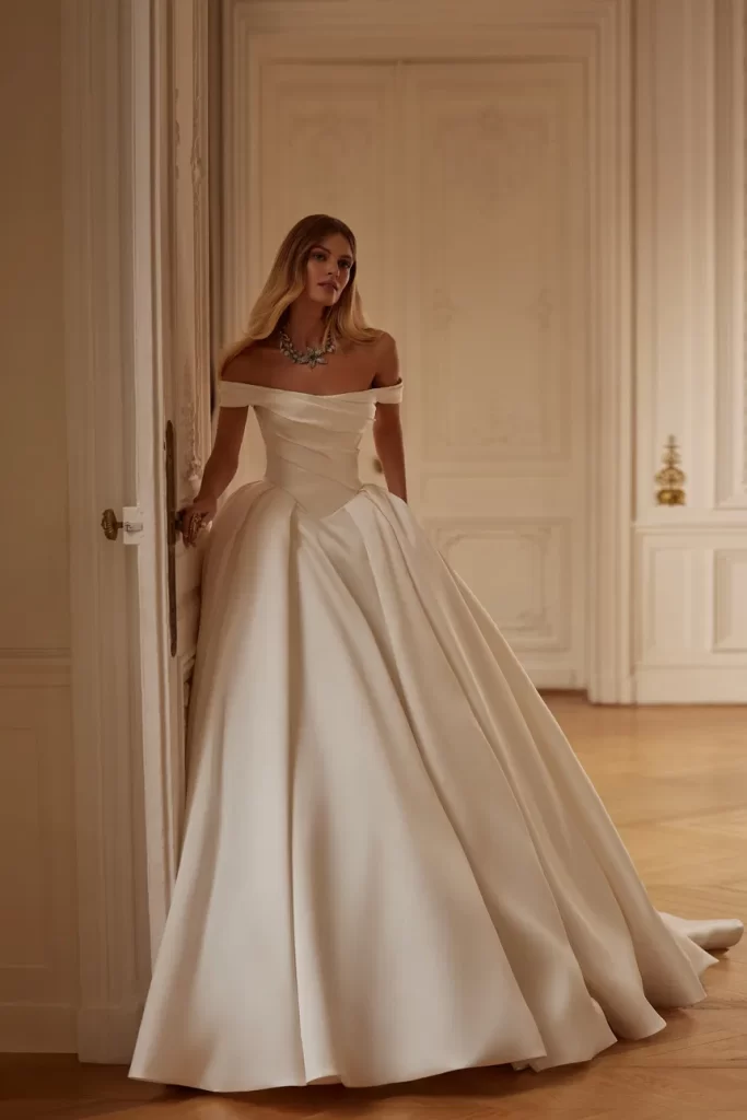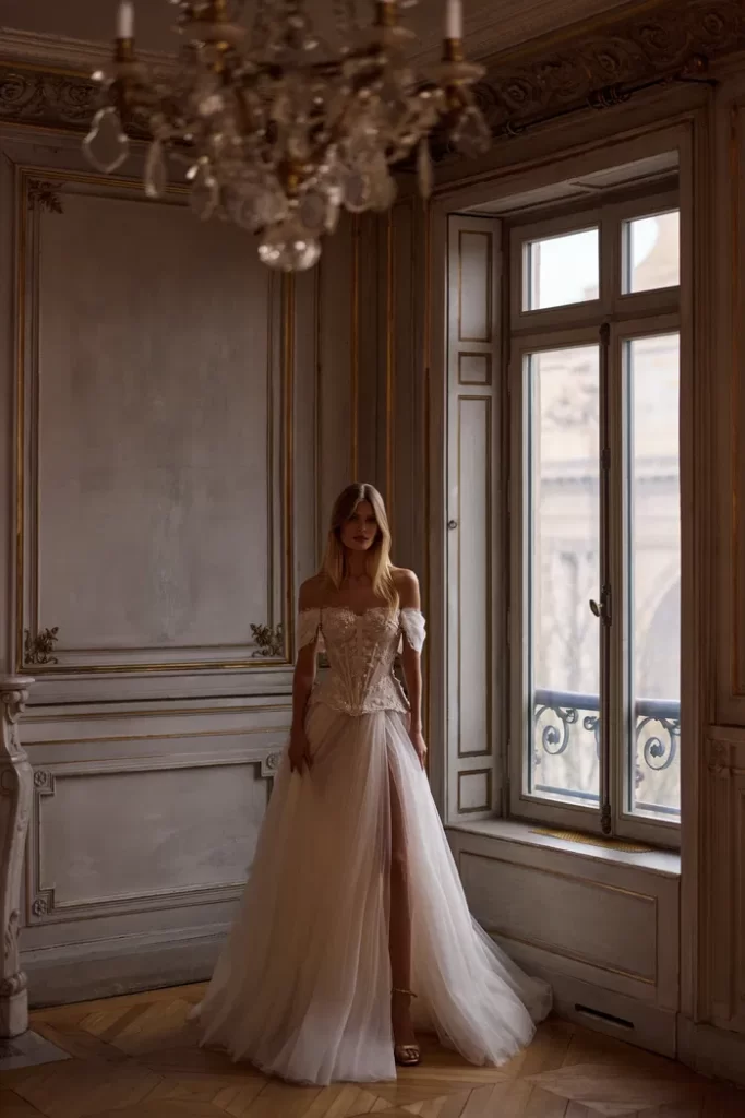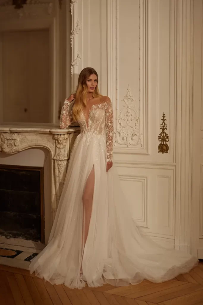Her elbisenin dikilmesinden sorumluyuz; önlükler, yüksek kaliteli Avrupa tekstilleri, Fransız dantelleri, İtalyan nakışları ve uygulamaları kullanılarak elle yapılır. Minimalist tasarıma sahip klasik elbiselerden cüretkar kumaş, kesim ve dekor kombinasyonlarına kadar her gelin, düğün için kendi elbise tarzını bulacaktır.